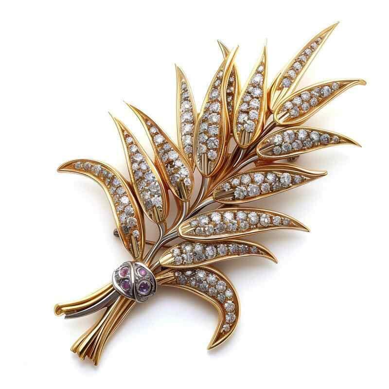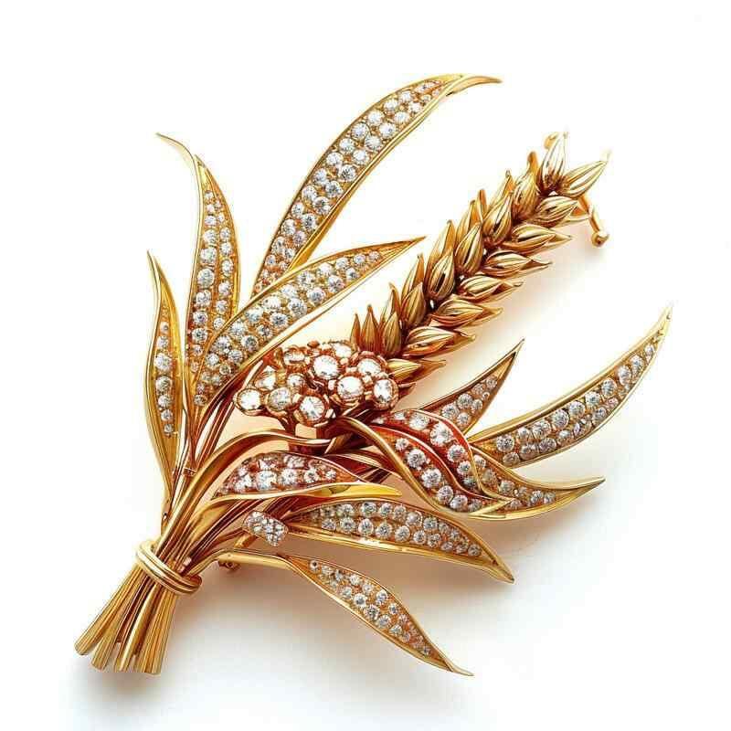 ブローチ レディース 女性用 麦の穂 植物モチーフ ジルコニア 銅製 高級感 上品なデザイン アクセサリー ジュエリー フォーマル 普段使い 秋冬