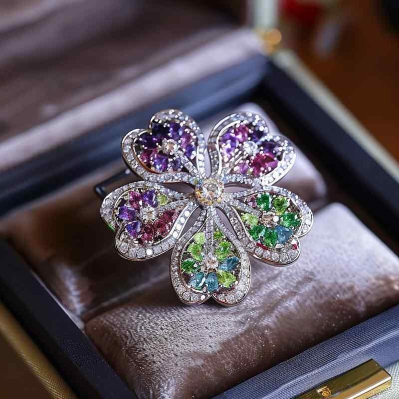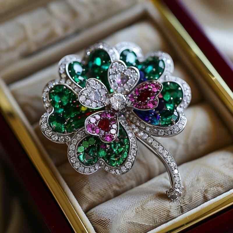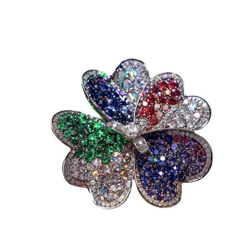 ブローチ レディース 女性用 高級感 ラグジュアリー ジルコニア クローバーモチーフ 銅製 精巧 ファッション アクセサリー