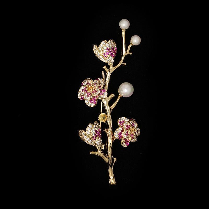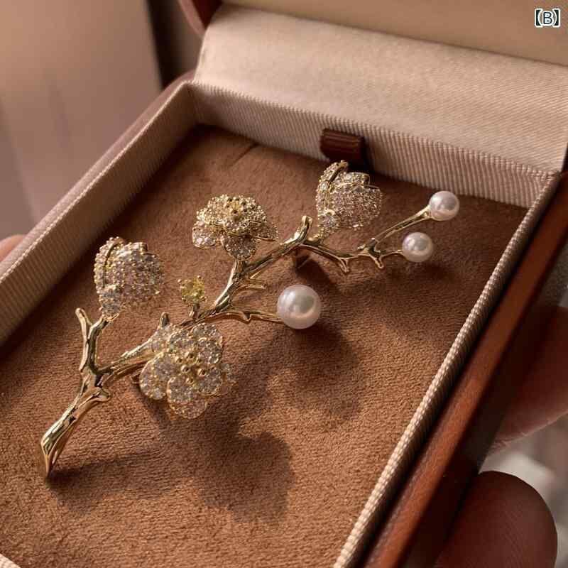 ブローチ パール レディース セレモニー コンサート 結婚式 贈り物 おしゃれ 胸飾り 高級感 あふれる 上品な 女性用 カラフル 多色 梅の花 パール エレガント シンプル