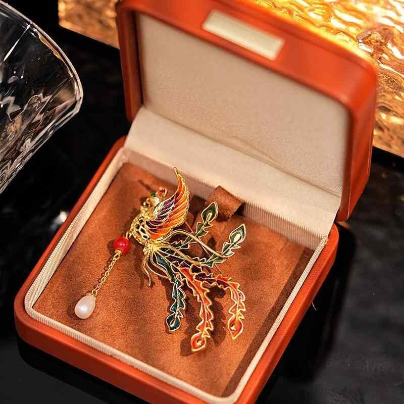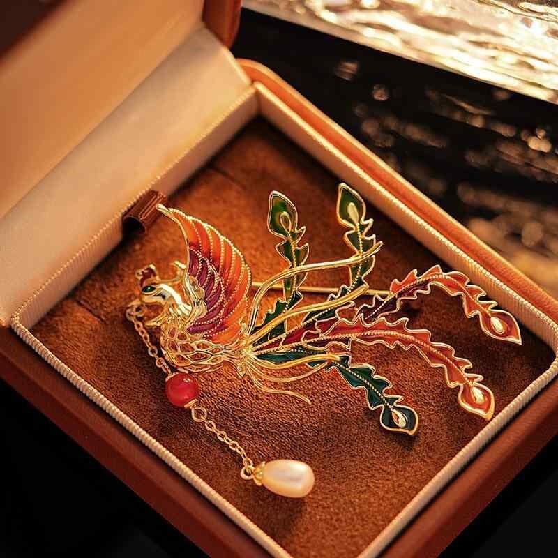 ブローチ パール レディース セレモニー コンサート 結婚式 贈り物 おしゃれ 胸飾り 高級感 和風 滴油 彩色 鳳凰 淡水パール タッセル 胸花 スーツ アクセサリー