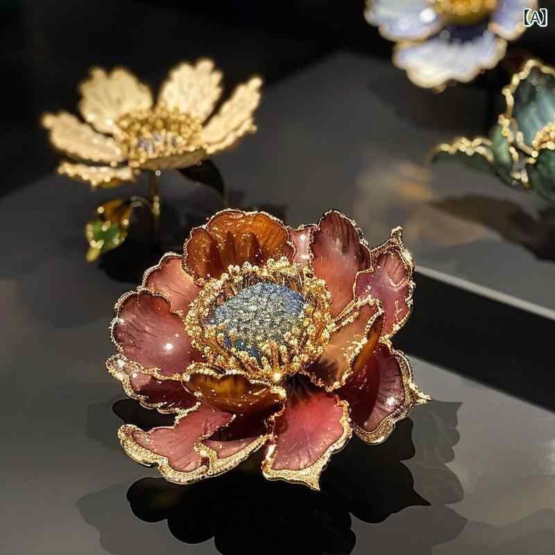 ブローチ 男女兼用 欧米風 レトロ ヴィンテージ シャクヤク 花 高級感 豪華 銅製 電気メッキ加工 花モチーフ 装飾 プレゼント