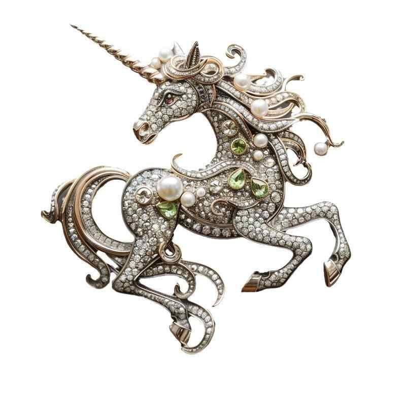 ブローチ レディース かわいい 高級感 ユニコーン ジルコニア 個性的 エレガント ヴィンテージ風 アクセサリー お出かけ フォーマル 普段使い プレゼント 上品 おしゃれ