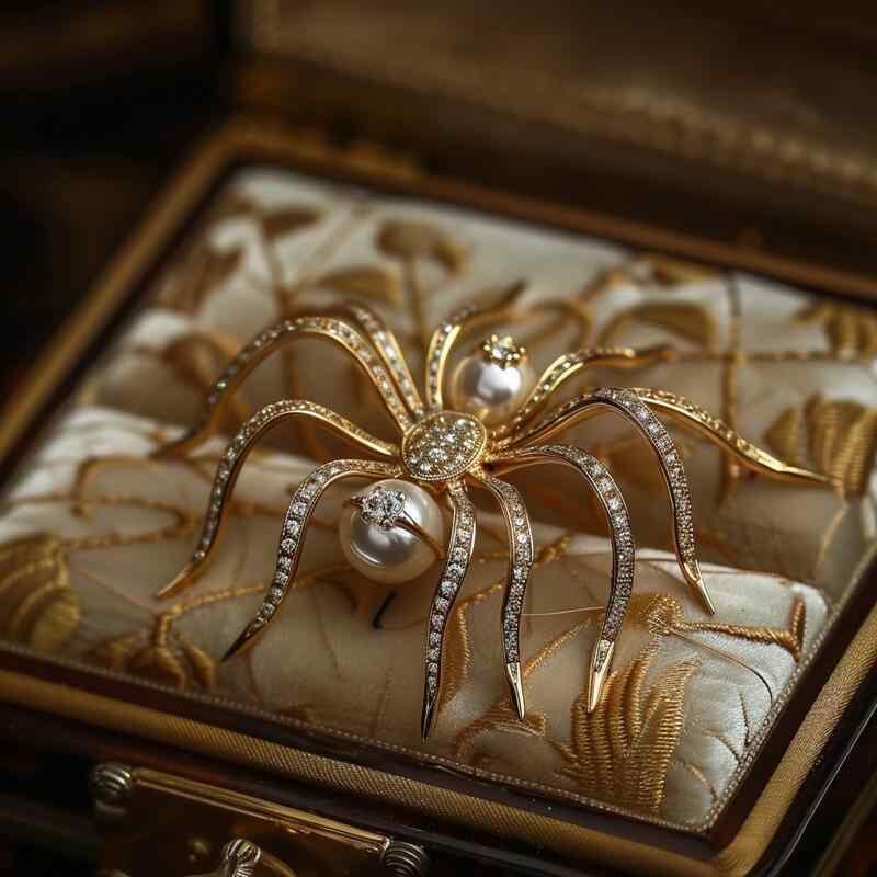 ブローチ レディース スパイダーモチーフ ジルコニア ゴールドメッキ 高級感 オリジナルデザイン レトロ エレガント パーティー フォーマル ジュエリー アクセサリー