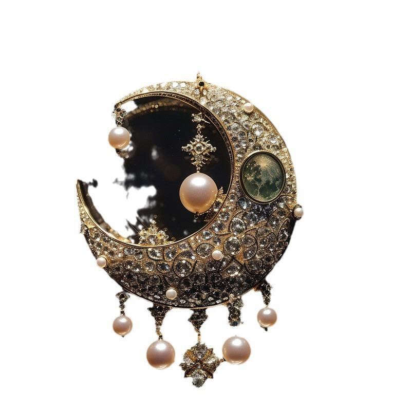 ブローチ レディース 月 ムーンモチーフ 中華風 レトロ アート 高級感 オリジナルデザイン 銅製 ピンブローチ コサージュ ペンダント ネックレス アクセサリー 普段使い フォーマル 記念日 ギフト 秋