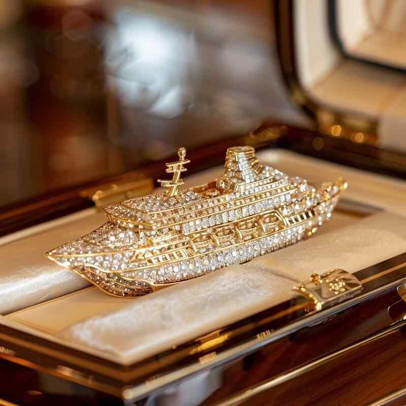 ブローチ レディース クルーズ船モチーフ ジルコニア装飾 煌めく 高級感 エレガント 銅製 電気メッキ加工 パーティー フォーマル 卓上飾り 置物