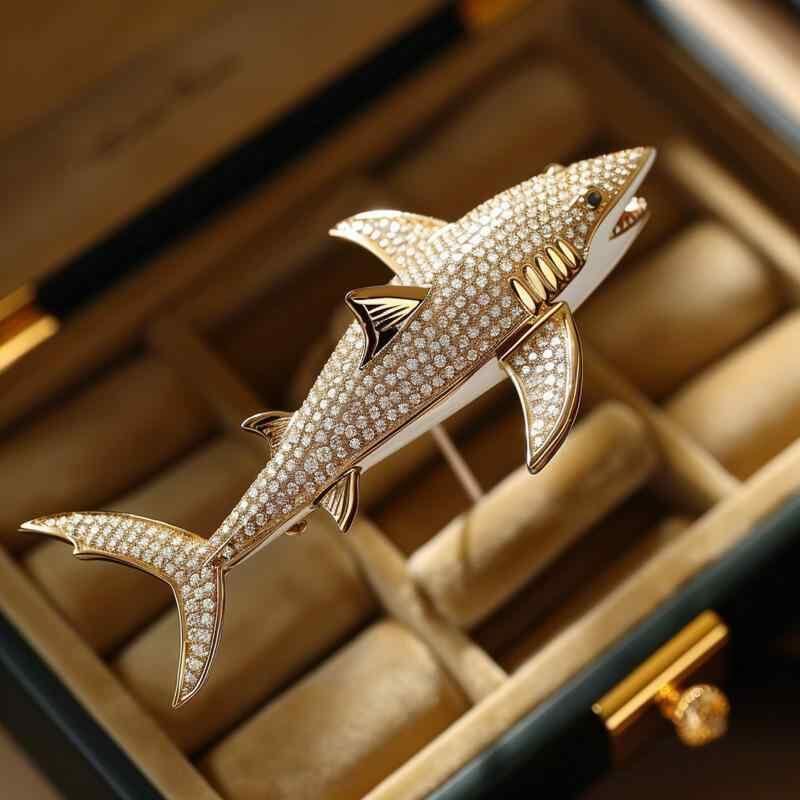 ブローチ レディース マリンモチーフ 鮫 サメ ジルコニア 高級感 輝き 銅製 真鍮製 クール 個性的 ユニークデザイン ジャケット ドレス スーツ フォーマル カジュアル ファッション小物 アクセサリー