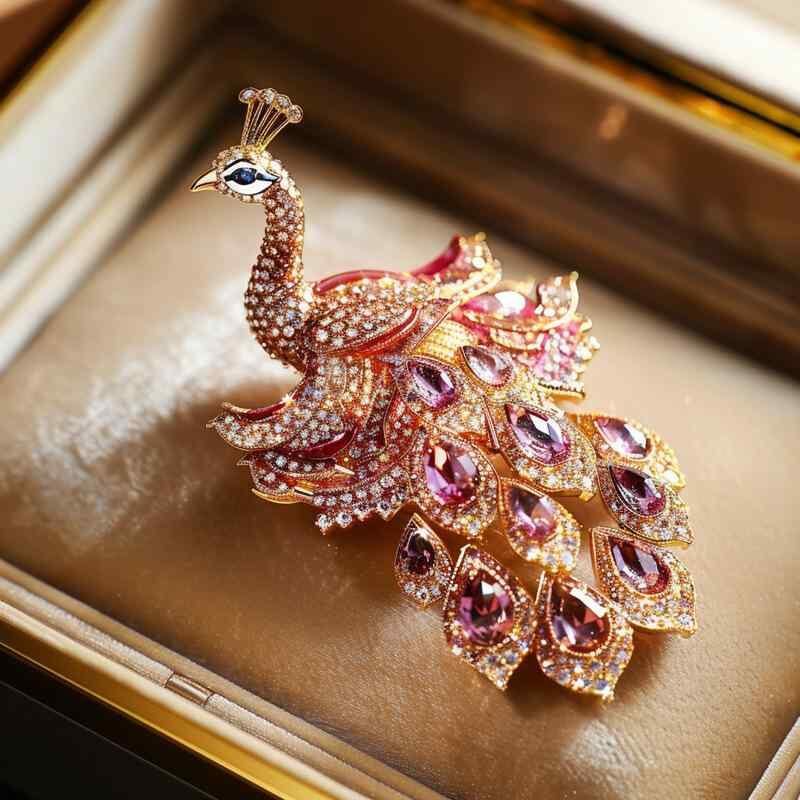 ブローチ レディース 孔雀モチーフ ジルコニア 銅製 ロイヤル調 貴族風 羽を広げたデザイン 上品 エレガント 高級感 華やか アクセサリー ファッション小物