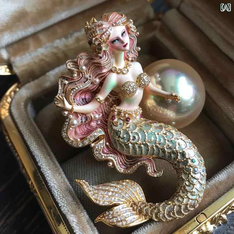 ブローチ ユニセックス 人魚 マーメイド モチーフ レトロ アンティーク 高級感 ライトラグジュアリー 独自デザイン 銅製 電気メッキ ファッション アクセサリー 普段使い 通勤スタイル 春夏