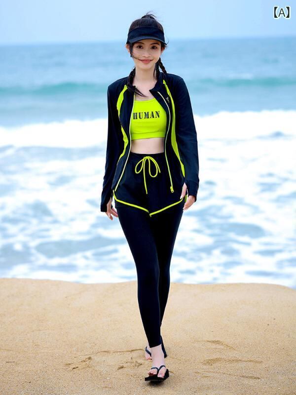 サーフスーツ ラッシュガード レディース 水着 スイムウェア セパレート 長袖 ロングパンツ UVカット 日焼け防止 全身 ナイロン 体型カバー マリンスポーツ シュノーケリング サーフィン ブラック グレーグリーン