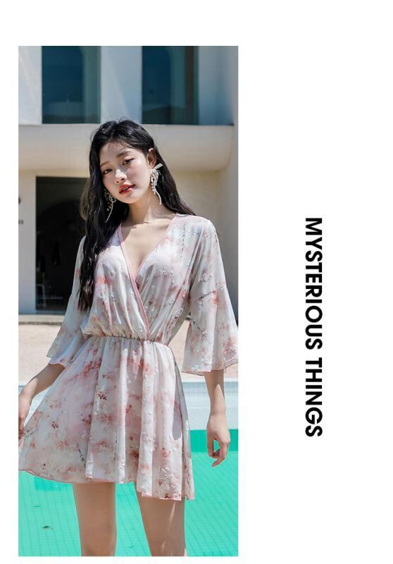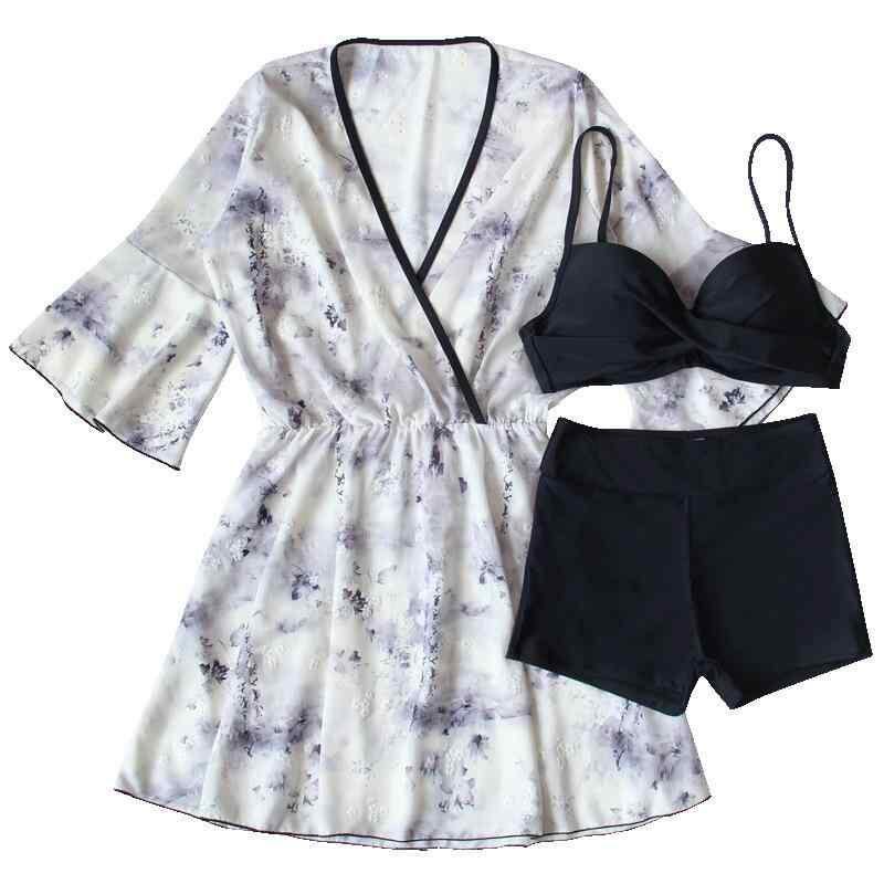 水着 レディース スイムウェア プラスサイズ セクシー セパレート ビキニ 夏用 温泉 ハイウエスト 体型カバー 着痩せ 3点セット 花柄 ワイヤー入り パッド入り