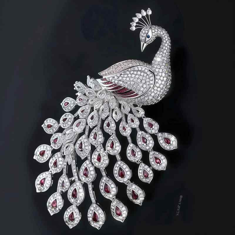 ブローチ レディース コサージュ クジャク 動物モチーフ 高級感 銅製 レッド おしゃれ 華やか ライトラグジュアリー ファッション 通勤 多機能 プレゼント 男女兼用