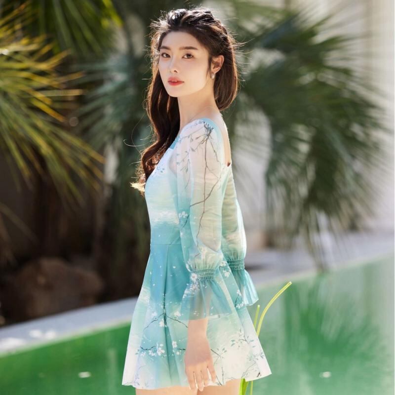 水着 レディース ワンピース エメラルドグリーン 体型カバー 着痩せ効果 ハイウエスト エレガント 高級感 中華風 スイムウェア ナイロン ポリエステル素材 プール ビーチ リゾート 夏