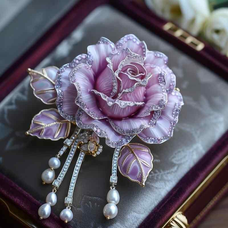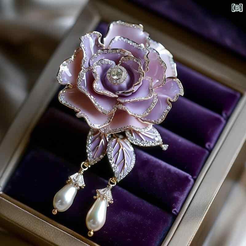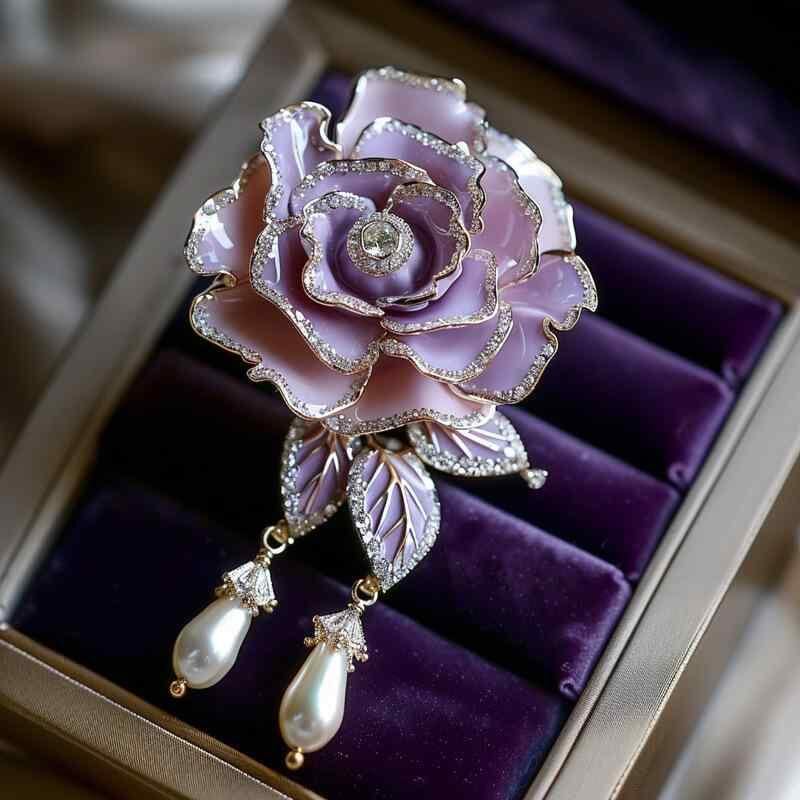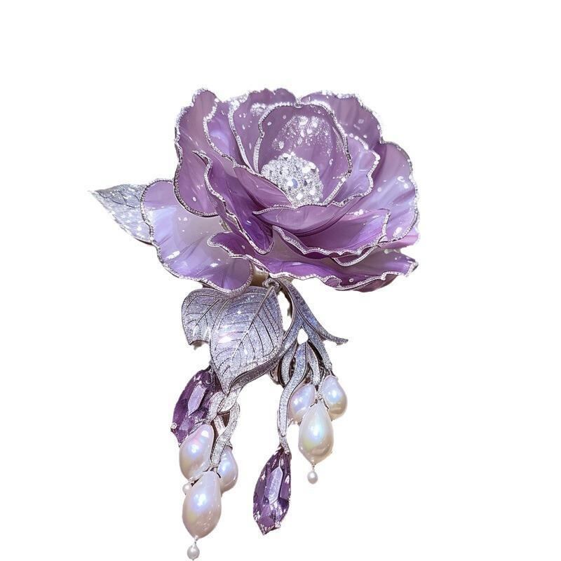 ブローチ ユニセックス 薔薇 花 コサージュ チャイナ風 和装 洋装 アクセサリー 上品 高級感 エレガント パープル 紫 銅合金 電気メッキ加工 ファッション 通勤 普段使い ギフト プレゼント 2WAY