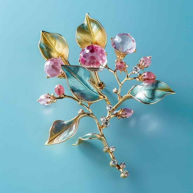 ブローチ レディース 女性用 冬青モチーフ カラフル クリスタル 銅製 電気メッキ加工 高級感 オリジナルデザイン 上品 エレガント 秋冬 ファッション小物 アクセサリー ギフト