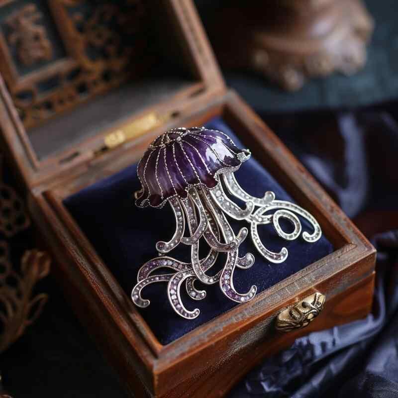 ブローチ レディース 高級感 グレープパープル クラゲ 海の生き物 ジュエリー アクセサリー 銅製 電気メッキ加工 オリジナルデザイン 個性的 プレゼント 普段使い 秋冬
