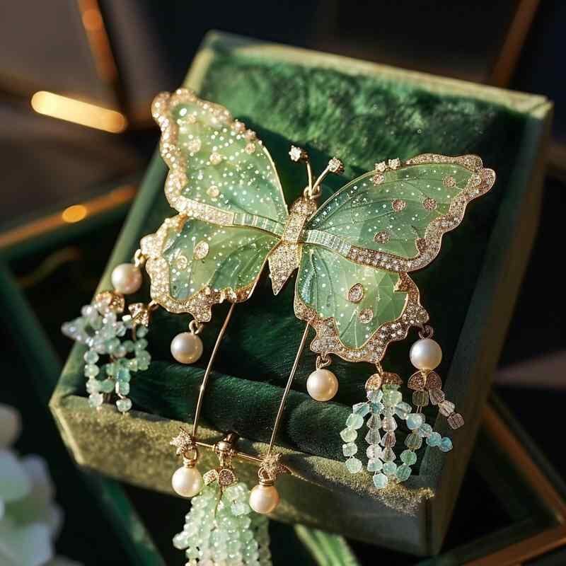 ブローチ レディース レトロ 森ガール風 蝶々 バタフライ タッセル フリンジ 妖精モチーフ アクセサリー ジュエリー 秋冬 普段使い パーティー 銅製 電気メッキ加工 高級感 オリジナルデザイン 装飾品