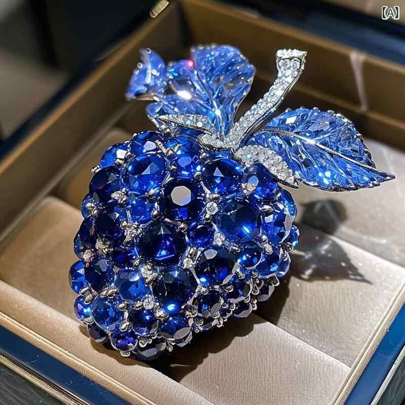 ブローチ 男女兼用 ユニセックス ヴィンテージ アンティーク 西洋風 ブルーベリー フルーツモチーフ 銅製 電気メッキ加工 ライトラグジュアリー 上品 多機能 プレゼント 普段使い オフィス ファッション小物 秋冬