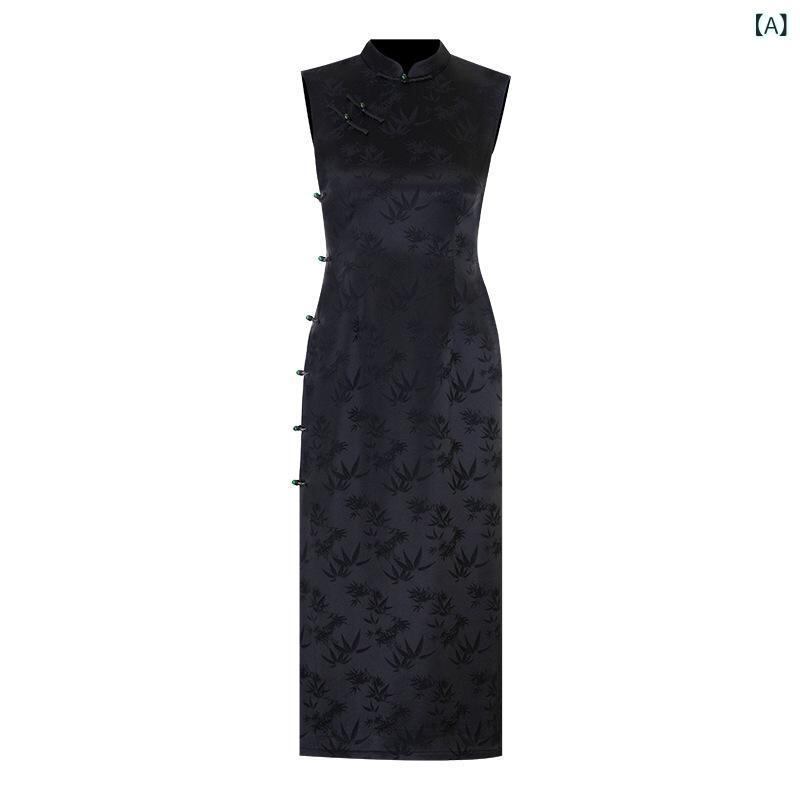 チャイナドレス レディース 中国風 レトロ エレガント ロング丈 ノースリーブ スタンドカラー 体型カバー 普段使い ワンピース 春夏