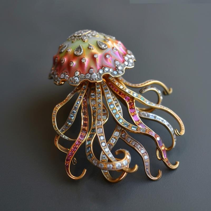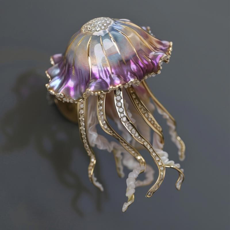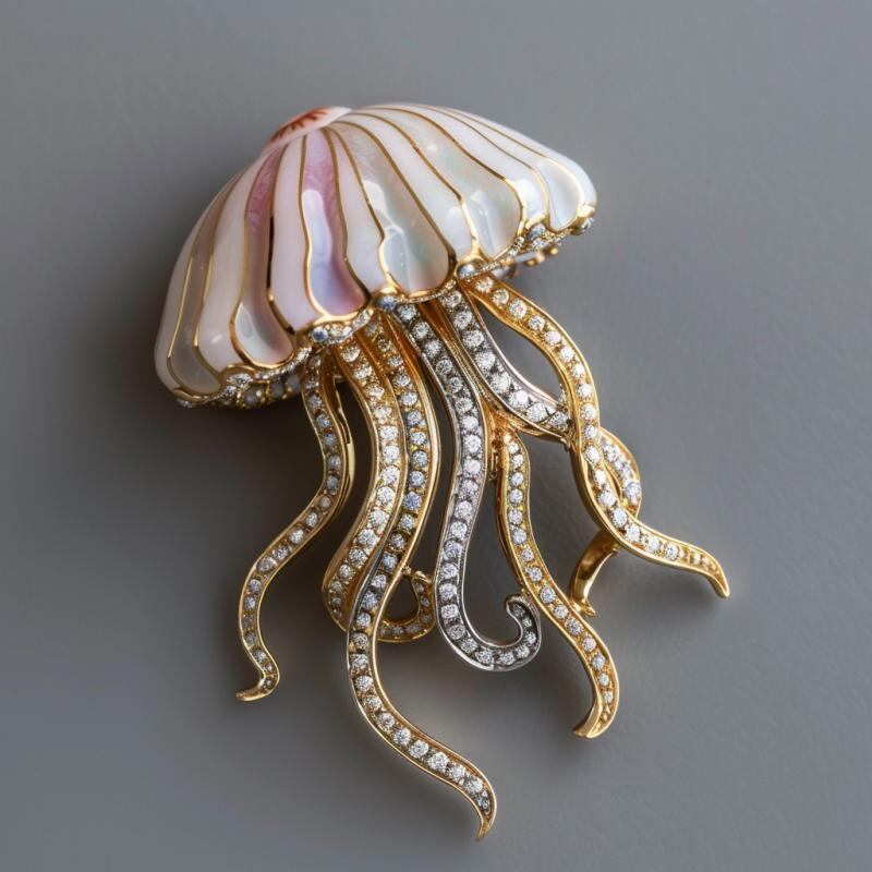 ブローチ レディース 個性派 クラゲ オーロラカラー 高級感 パール装飾 ジュエリー アクセサリー 銅製 ファッション小物