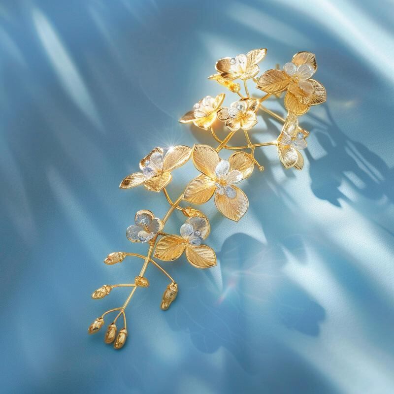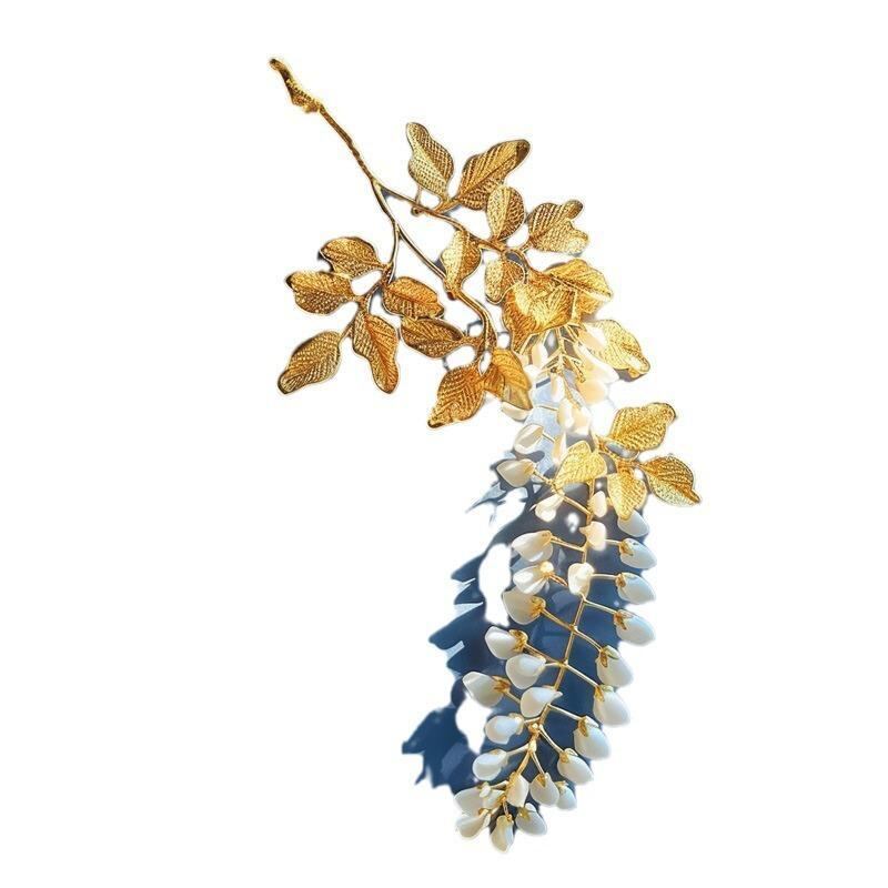 ブローチ レディース 藤の花モチーフ オリジナルデザイン 高級感 エレガント ゴールド 金メッキ 銅製 アクセサリー フォーマル パーティー 結婚式 プレゼント ギフト