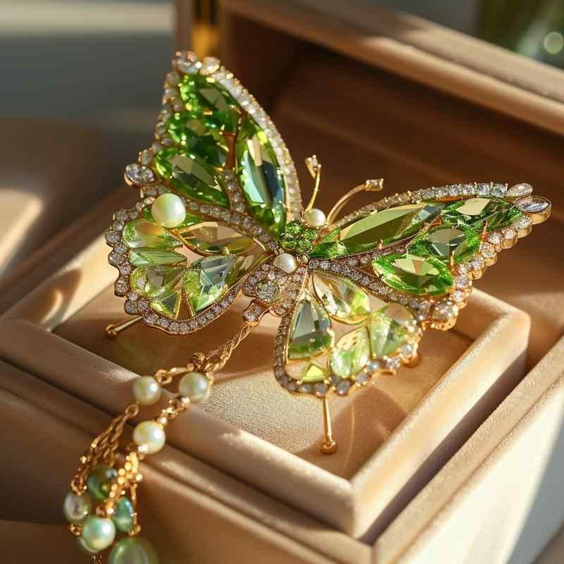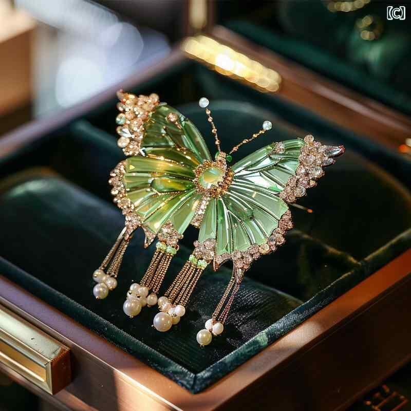 ブローチ 男女兼用 グリーン 蝶々 天使の翼 羽根 銅 ジルコニア 高級感 精巧な装飾 幻想的デザイン 夢色アクセサリー フォーマル カジュアル プレゼント