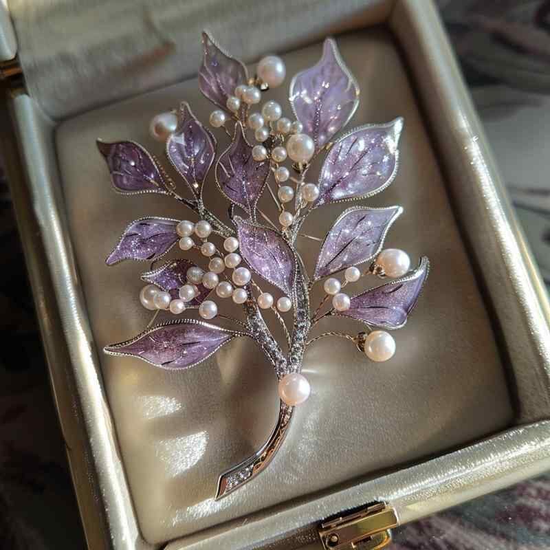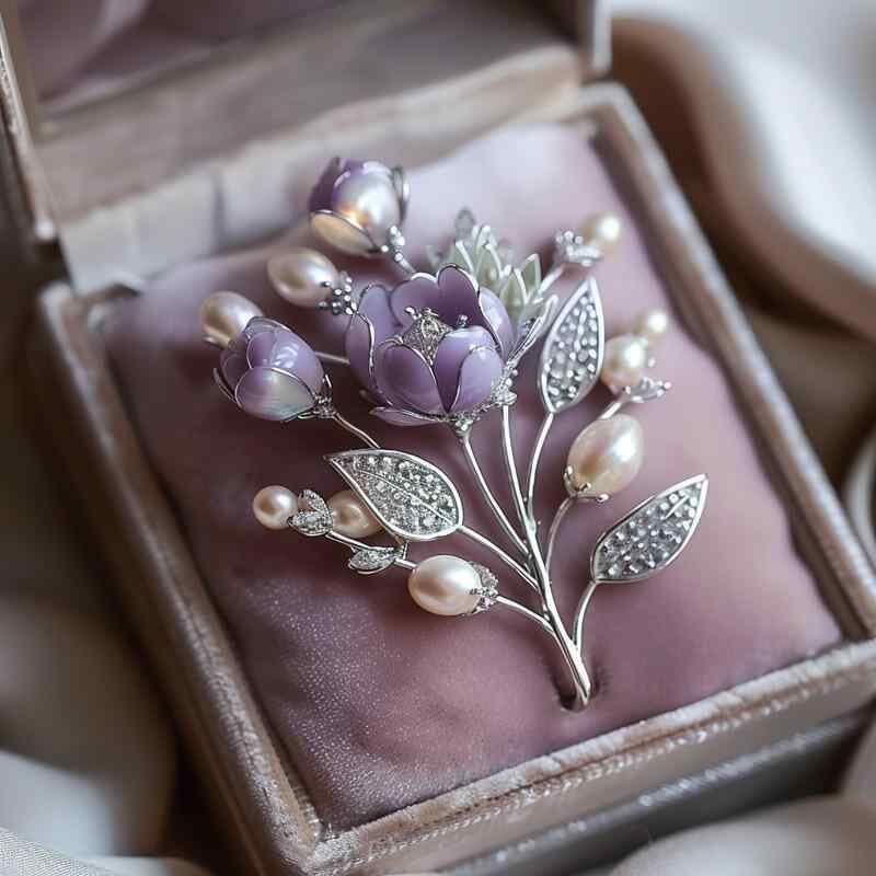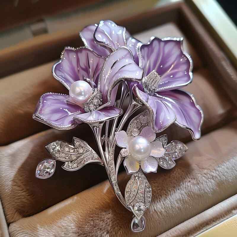 ブローチ レディース 紫色 リュウゼツラン 花モチーフ ジルコニア パール エレガント ロマンティック カントリー風 上品 華やか 銅製 電気メッキ加工