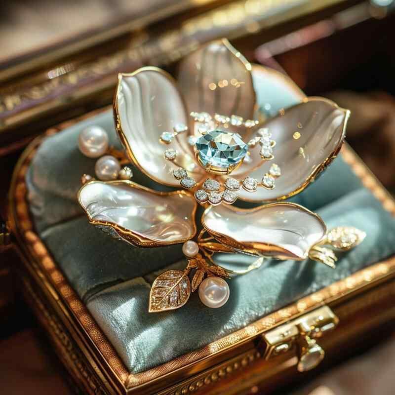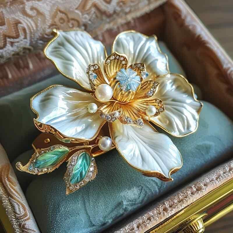 ブローチ レディース 琺瑯エナメル ジルコニア 淡水パール 高級感 豪華 銅製 電気メッキ コサージュ 花モチーフ 上品 エレガント アクセサリー