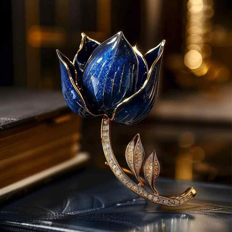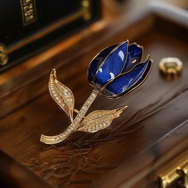 ブローチ レディース 韓国スタイル ブルー チューリップ エナメル加工 銅製 花モチーフ 上品 エレガント パーティー フォーマル クール 個性派 おしゃれ