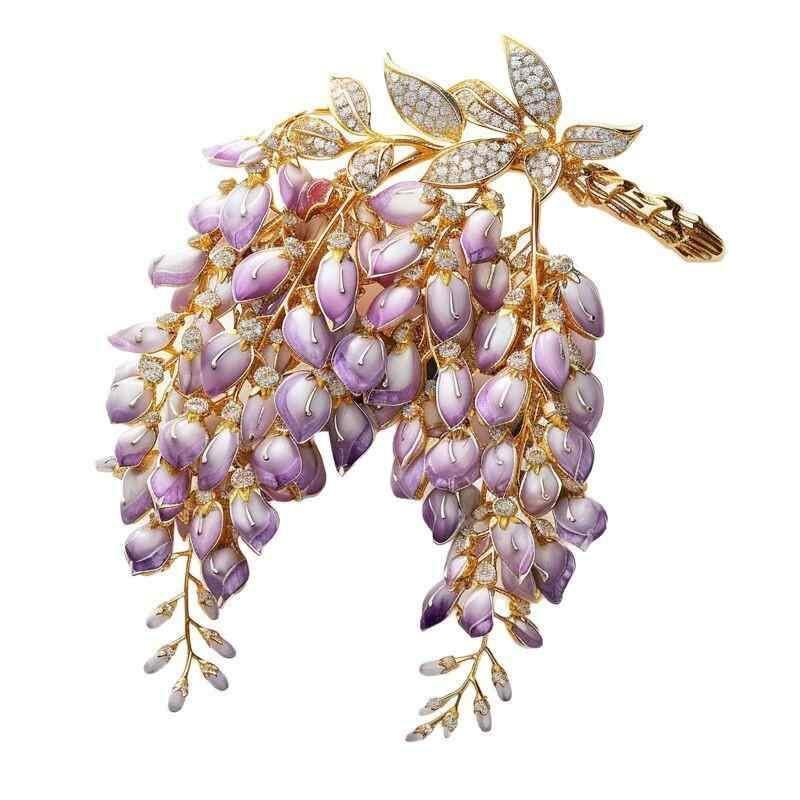 ブローチ レディース チャイナ風 藤の花 オリジナルデザイン 高級感 華やか 上質 限定 七宝焼き エナメル 銅製 美術館 コレクション 記念日 プレゼント ファッション フラワーモチーフ 多機能
