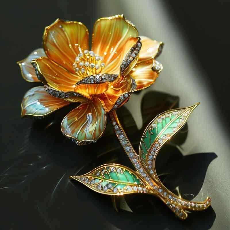 ブローチ レディース イエロー 水仙モチーフ フラワーデザイン 中国風 クラシック レトロ アンティーク 高級感 高品質 銅製 ジュエリー アクセサリー 記念日 贈り物 プレゼント フォーマル