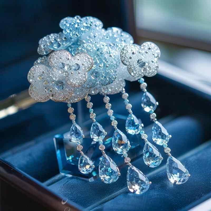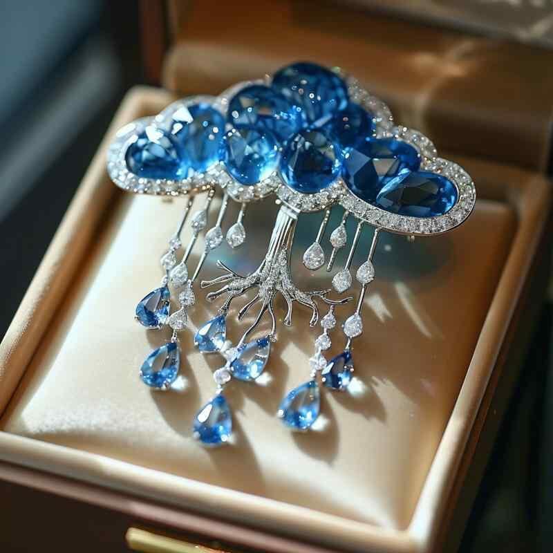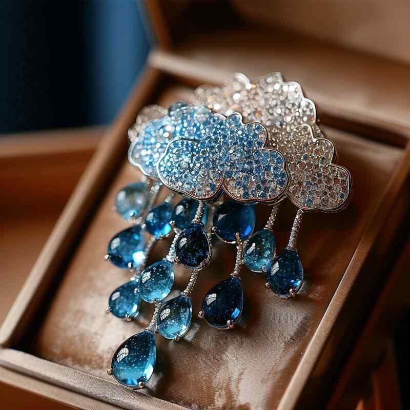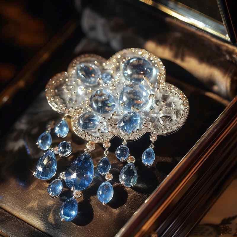 ブローチ レディース ブルークリスタル 雲モチーフ 高級感 個性的 繊細 上品 かわいい 銅製 電気メッキ加工 サマー オフィス フォーマル ファッション小物 プレゼント