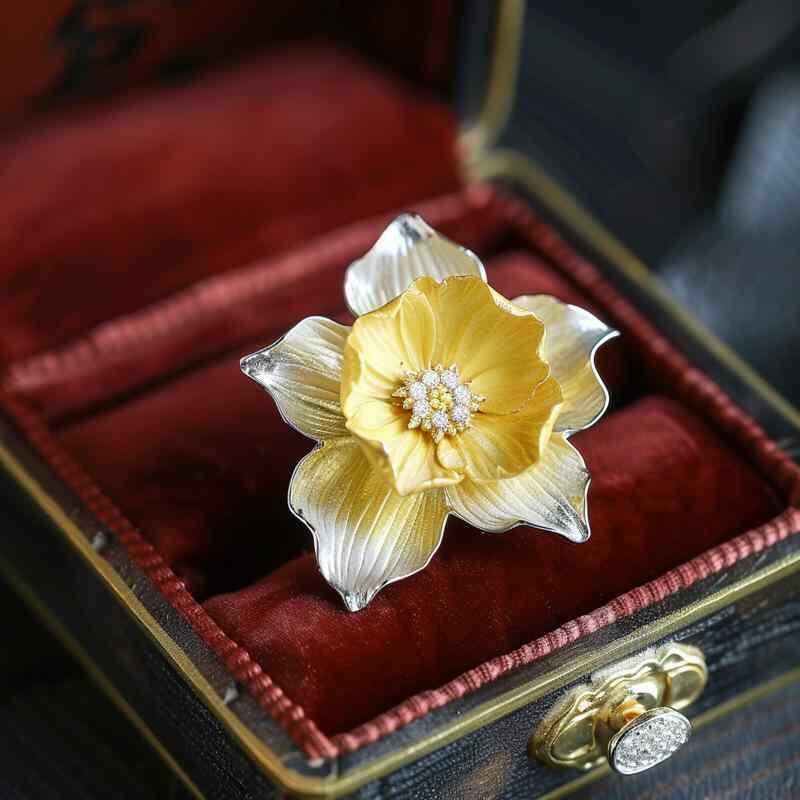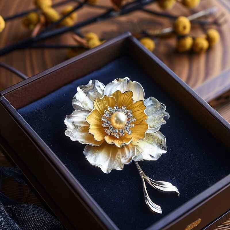 ブローチ 淡水パール レディース セレモニー フォーマル 入学式 おしゃれ 胸飾り アンティーク感 贈り物 高級感 黄水仙 花 植物 花柄