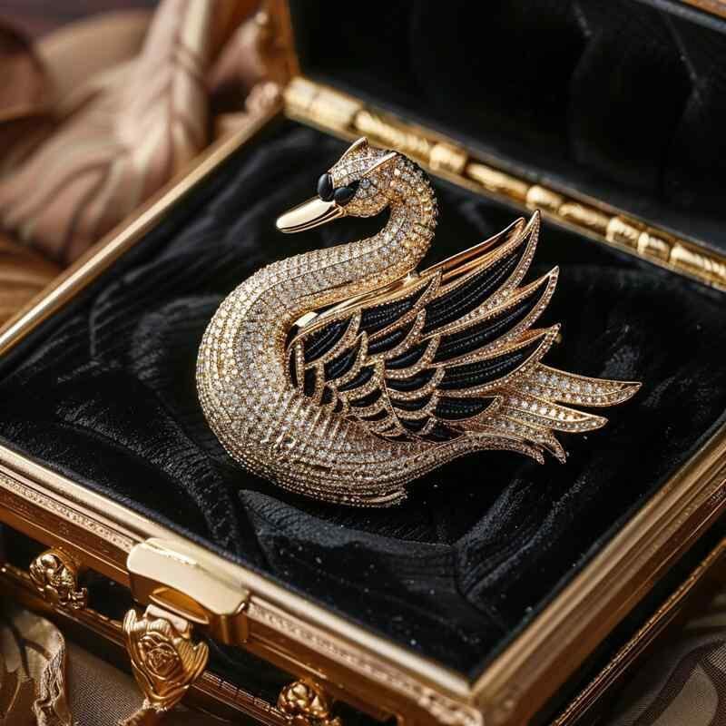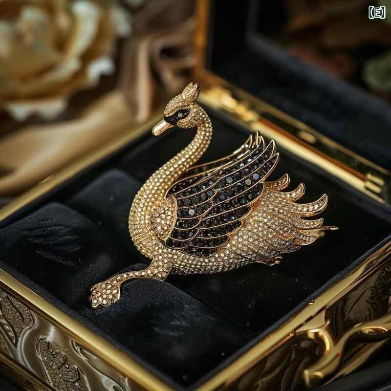 ブローチ 男女兼用 高級感 スワン ラインストーン ジルコニア 合金製 フェザー ビジネス フォーマル スーツ用 オフィス 通勤 欧米風 おしゃれ ピンブローチ 記念日 プレゼント ブラック
