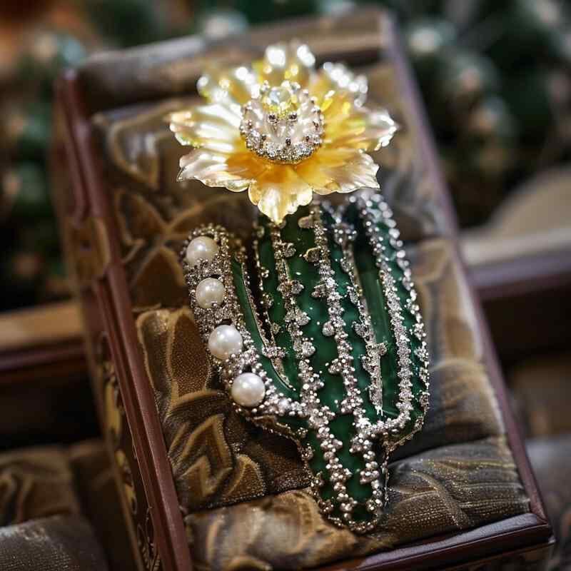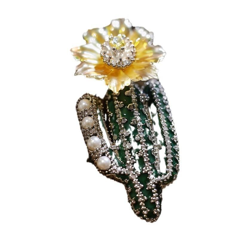 ブローチ レディース ビクトリアンデザイン サボテンモチーフ 高級感 ジルコニア 銅製 電気メッキ加工 オリジナルデザイン 記念品 装飾品