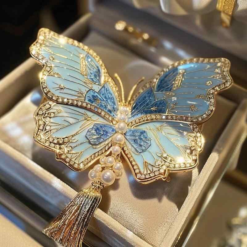 ブローチ レディース 青い海 星空 蝶 パール エナメル彩 タッセル 銅製 電気メッキ加工 高級感 高見え ファッション通勤 フォーマル カジュアル 上品 華やか 春 デイリー おしゃれ 小物 アクセサリー