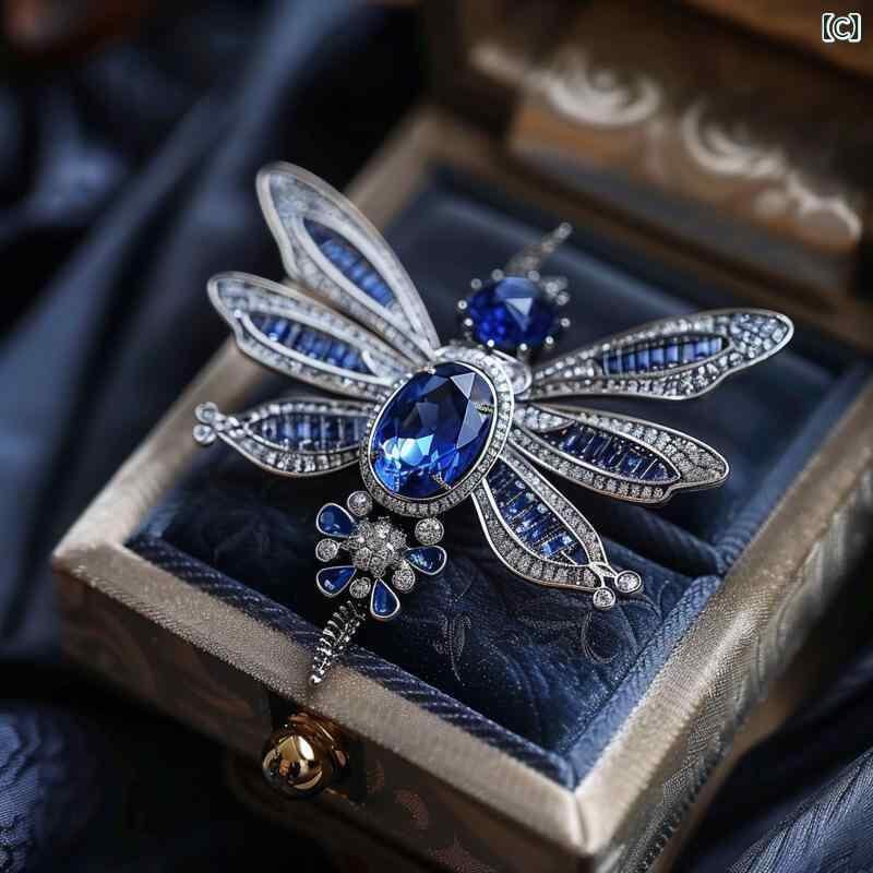 ブローチ レディース 女性用 高級感 ラグジュアリー サファイア ハエ トンボ 昆虫 動物モチーフ 精巧な細工 パール装飾 銅製 クールスタイル アクセサリー ギフト