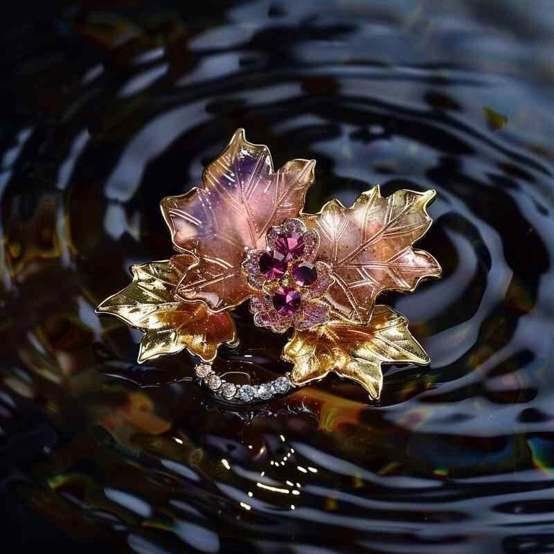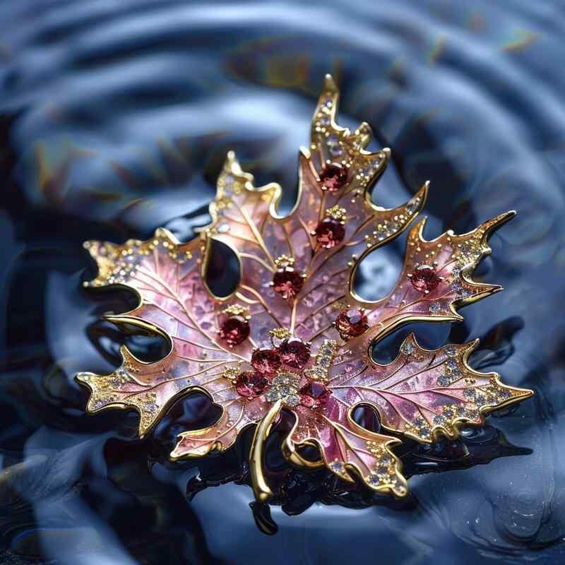 ブローチ レディース 女性用 楓葉 もみじ リーフモチーフ クリスタル 銅製 高級感 上品 エレガント ナチュラル ボタニカル 秋 アクセサリー フォーマル パーティー 結婚式 デイリーユース