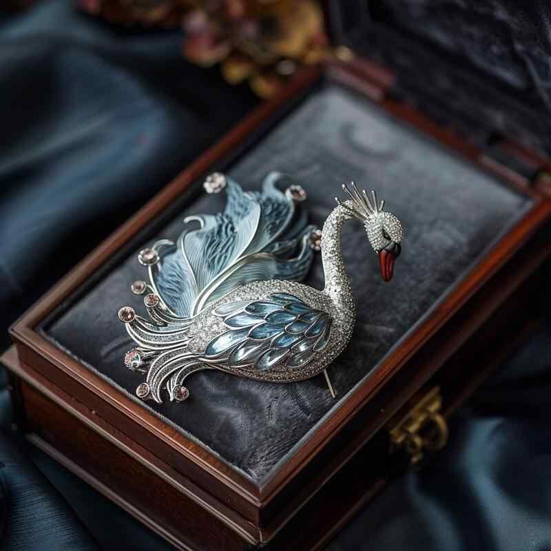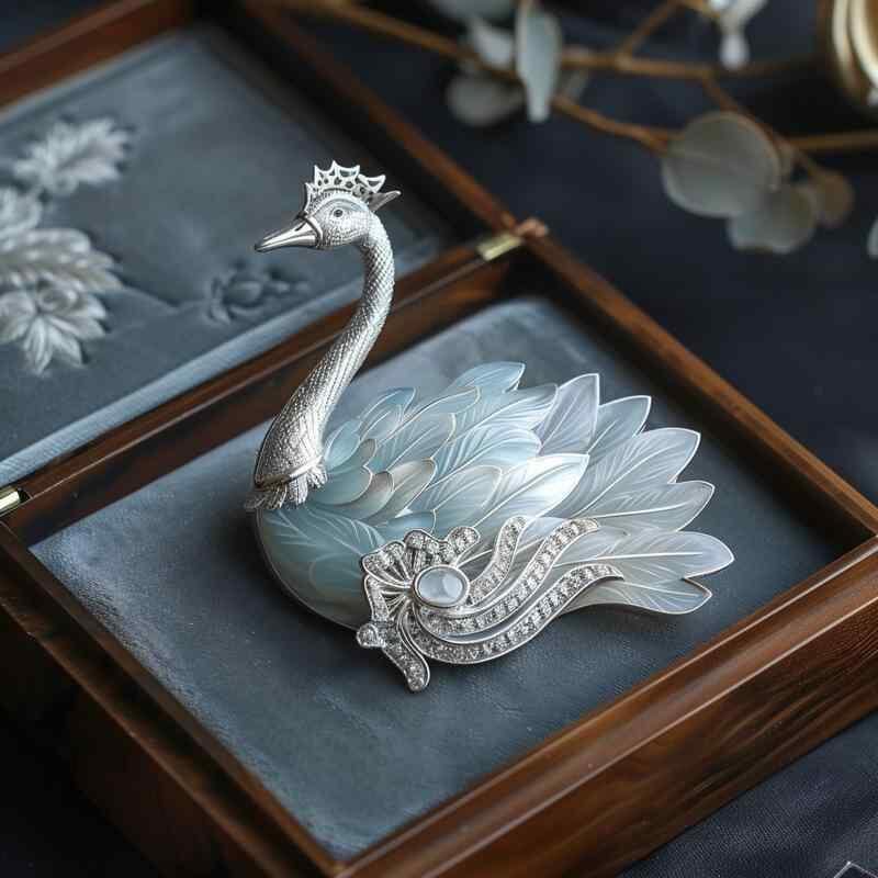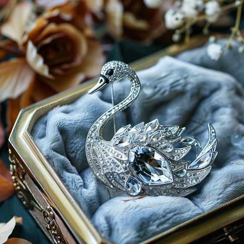 ブローチ レディース 女性用 白鳥 スワン モチーフ 立体 アートデザイン パール装飾 銅製 高級感 韓国風 上品 エレガント 洗練 クールスタイル 結婚式 パーティー フォーマル 普段使い 秋
