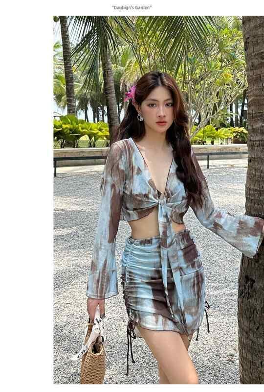 水着 レディース セパレート ビキニ 4点セット ぼかし染め グラデーション 大人可愛い 体型カバー 長袖 ラッシュガード パッド付き 速乾 高伸縮 大きいサイズ プラスサイズ ふくよか 夏 プール 海 リゾート