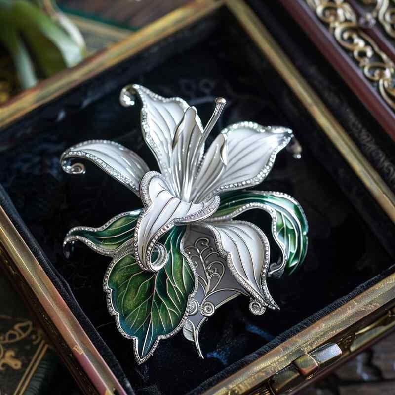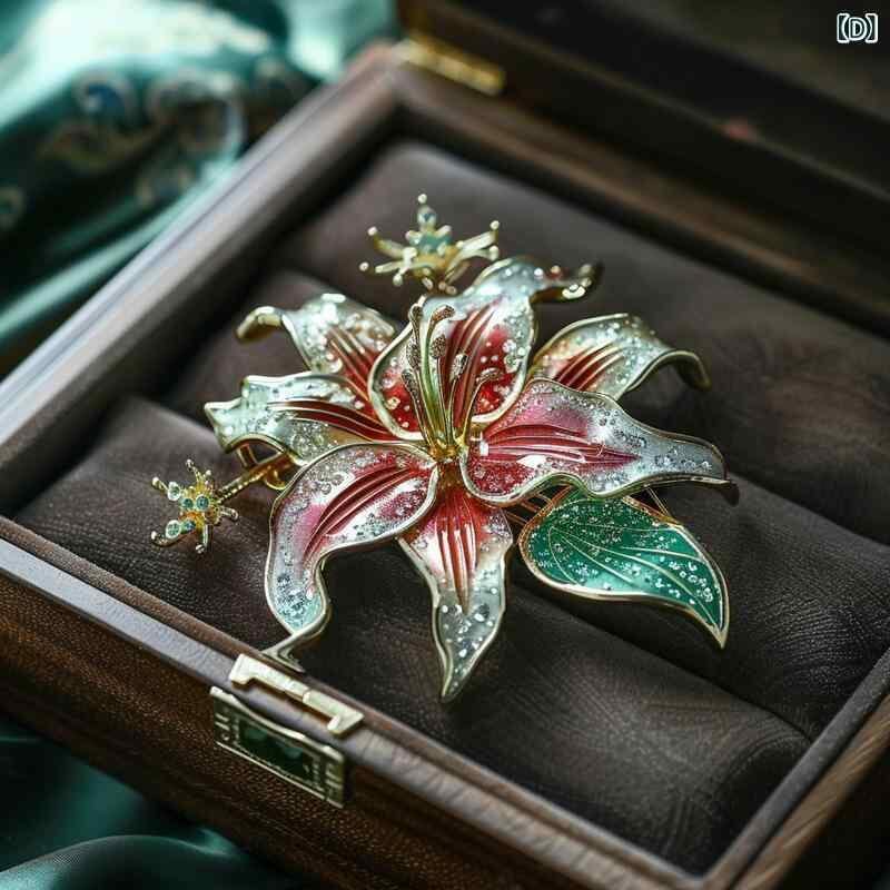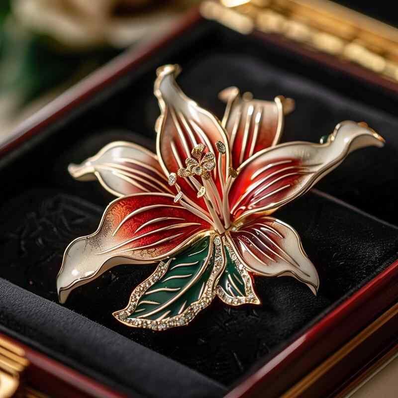 ブローチ レディース レトロ 高級感 ユリ フラワーモチーフ オリジナルデザイン 銅製 エポキシ樹脂加工 コート アウター ワンポイント アクセント 上品 エレガント ギフト プレゼント