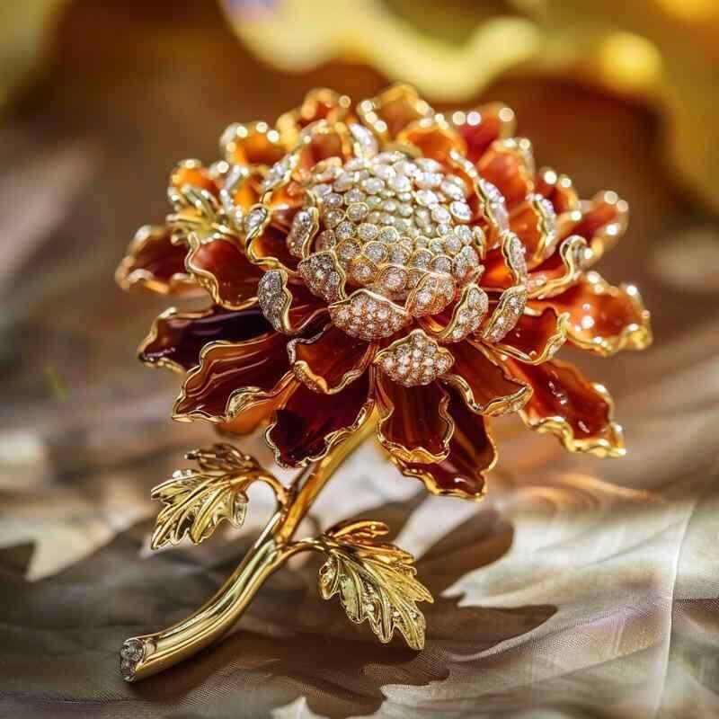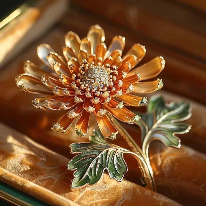 ブローチ レディース 女性用 菊の花 花柄 ラインストーン 牧歌的 甘め フェミニン 高級感 上品 銅製 電気メッキ加工 秋冬 装飾 ギフト プレゼント
