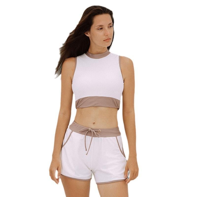 水着 レディース セパレート スイムウェア 3点セット 体型カバー 温泉 リゾート プール 水泳 スポーツ ナイロン ポリエステル 胸パッド付き ノンワイヤー ノースリーブ ホワイト