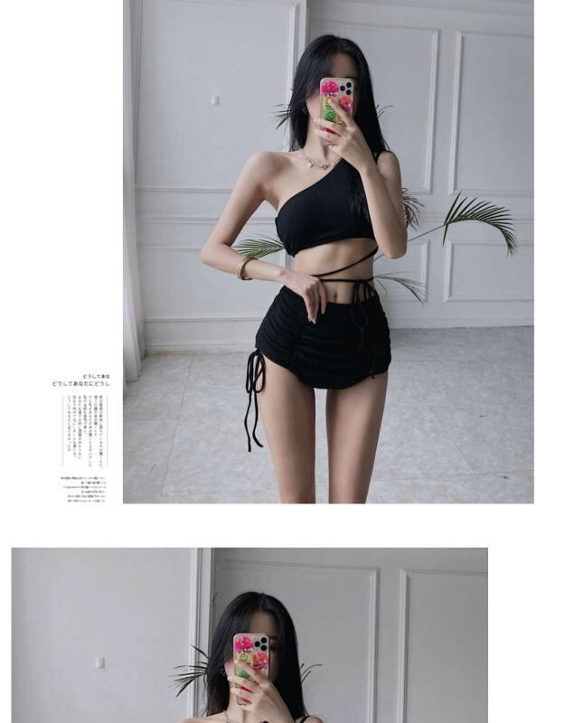 水着 レディース 春夏 セクシー チューブトップ ストラップ付き ビキニ 小胸向け ハイウエスト 体型カバー ワイヤー入り ブラック パッドなし シンプル