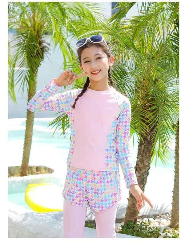 水着 女の子 ジュニア セパレート 長袖 ロングパンツ 速乾 UVカット 伸縮性 ポリエステル スイムウェア スイミングスクール トレーニング 学校用 ピンク