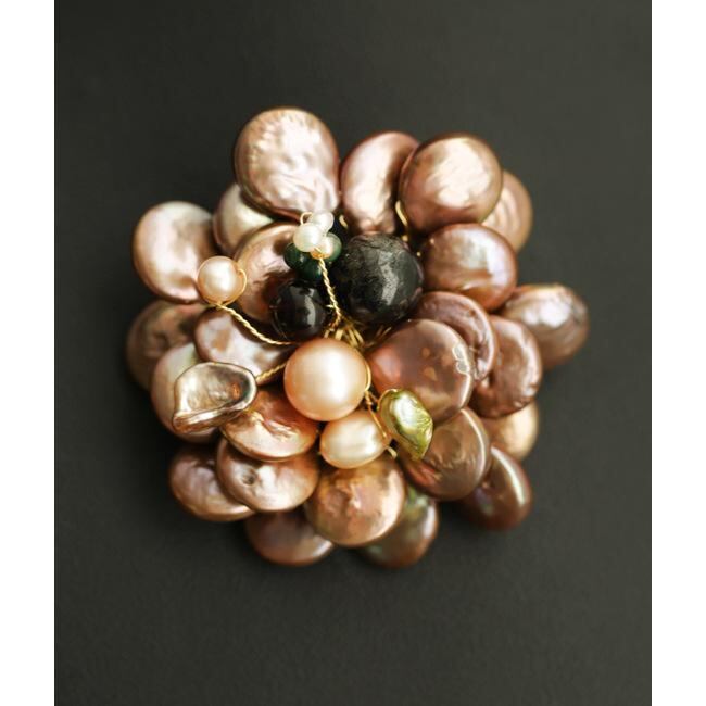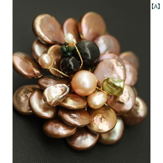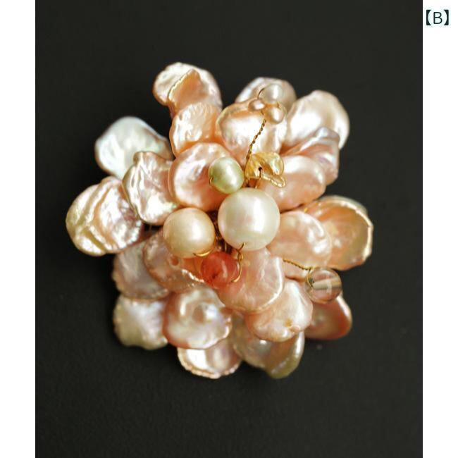 ブローチ レディース コサージュ ハンドメイド マルチカラー 花柄 変形淡水パール 貝殻 ロココ調 エレガント レトロ フォーマル 結婚式 パーティー 普段使い カーキ ピンク ネイビー