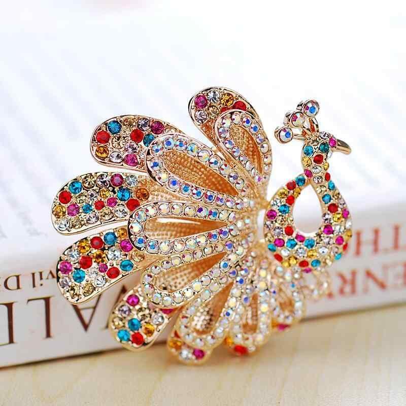 ブローチ レディース 人気 シンプル おしゃれ エレガント 合金製 電気メッキ加工 スカーフリング ショール留め具 コサージュ 胸飾り 動物モチーフ ゴールドカラー マルチカラー フォーマル 結婚式 パーティー アクセサリー