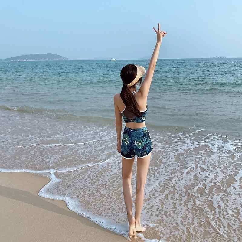 水着 レディース 4点セット セパレート ロングスリーブ ラッシュガード ショートパンツ 体型カバー UVカット 露出控えめ 温泉 プール スポーツ スタイルアップ パッド付き ワイヤーなし グリーン ポリエステル