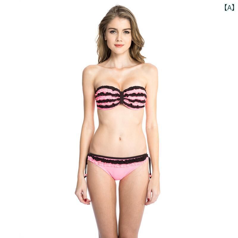 水着 レディース ビキニ ピンク バンドゥ プッシュアップ ワイヤー入り セクシー 無地 バックオープン 欧米スタイル ナイロン 高伸縮性 ストレッチ 耐久性 リゾート ビーチ プール 夏