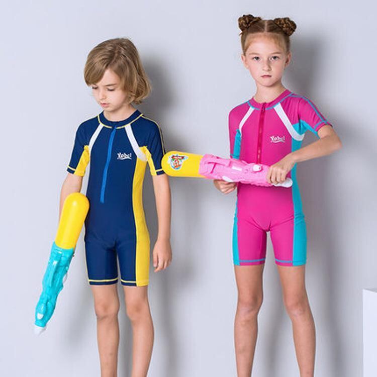 ラッシュガード キッズ ジュニア 子供 男女兼用 韓国風 ワンピース 半袖 ショートパンツ UVカット 日焼け防止 高伸縮性 ナイロン素材 水着 プール 海水浴