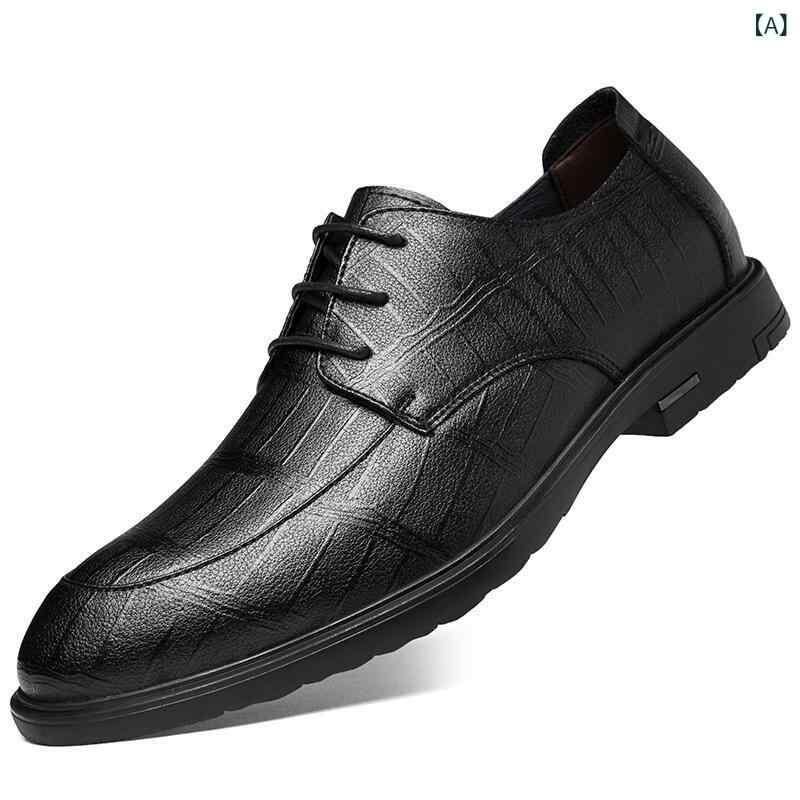紳士靴 革靴 メンズ ダービーシューズ 本革 牛革 レザー ビジネス フォーマル カジュアル 夏用 通気性 クッション性 シークレットヒール 脚長効果 レースアップ 編み上げ ブリティッシュスタイル ブラック